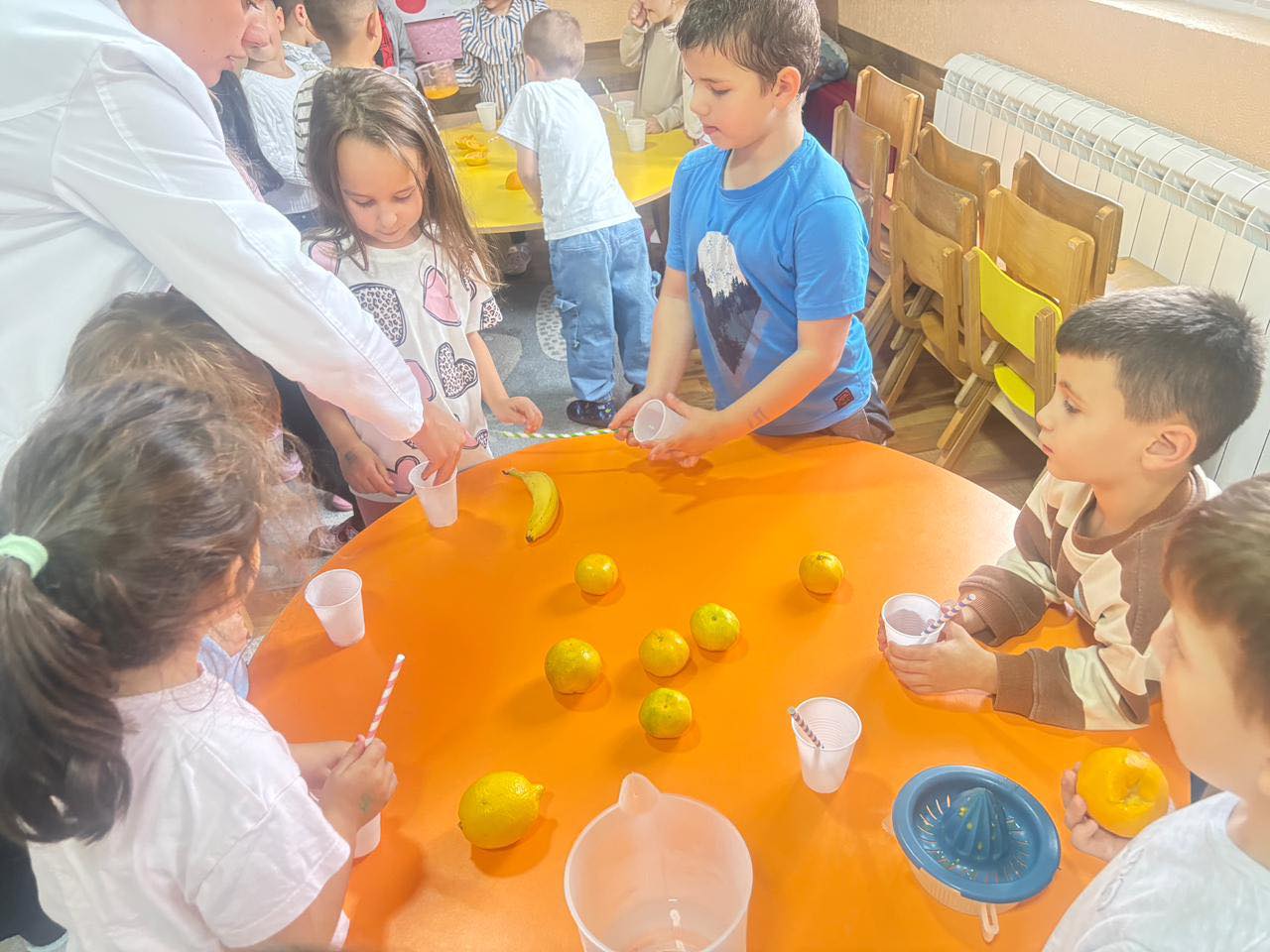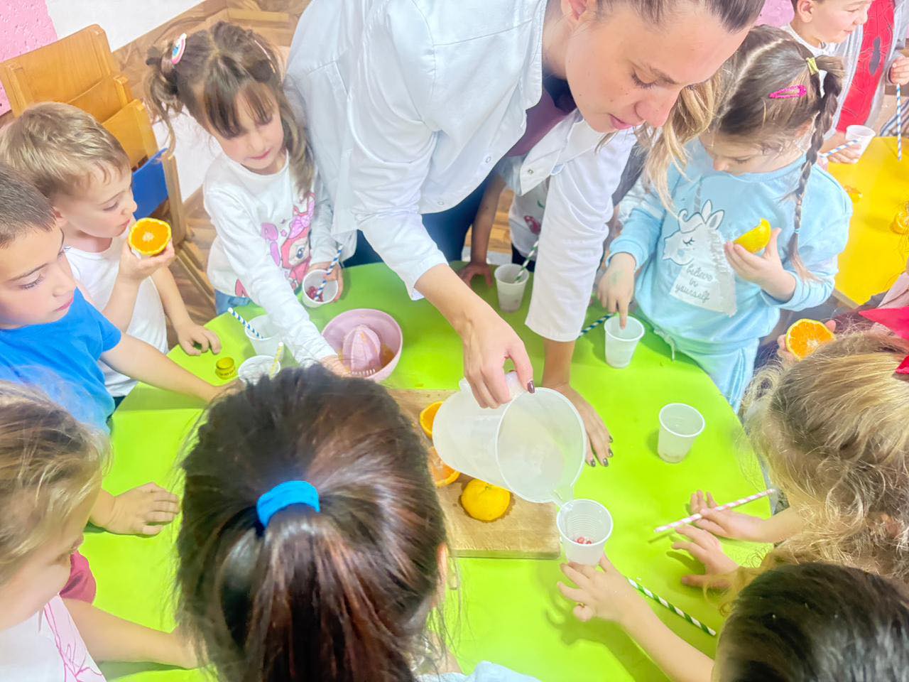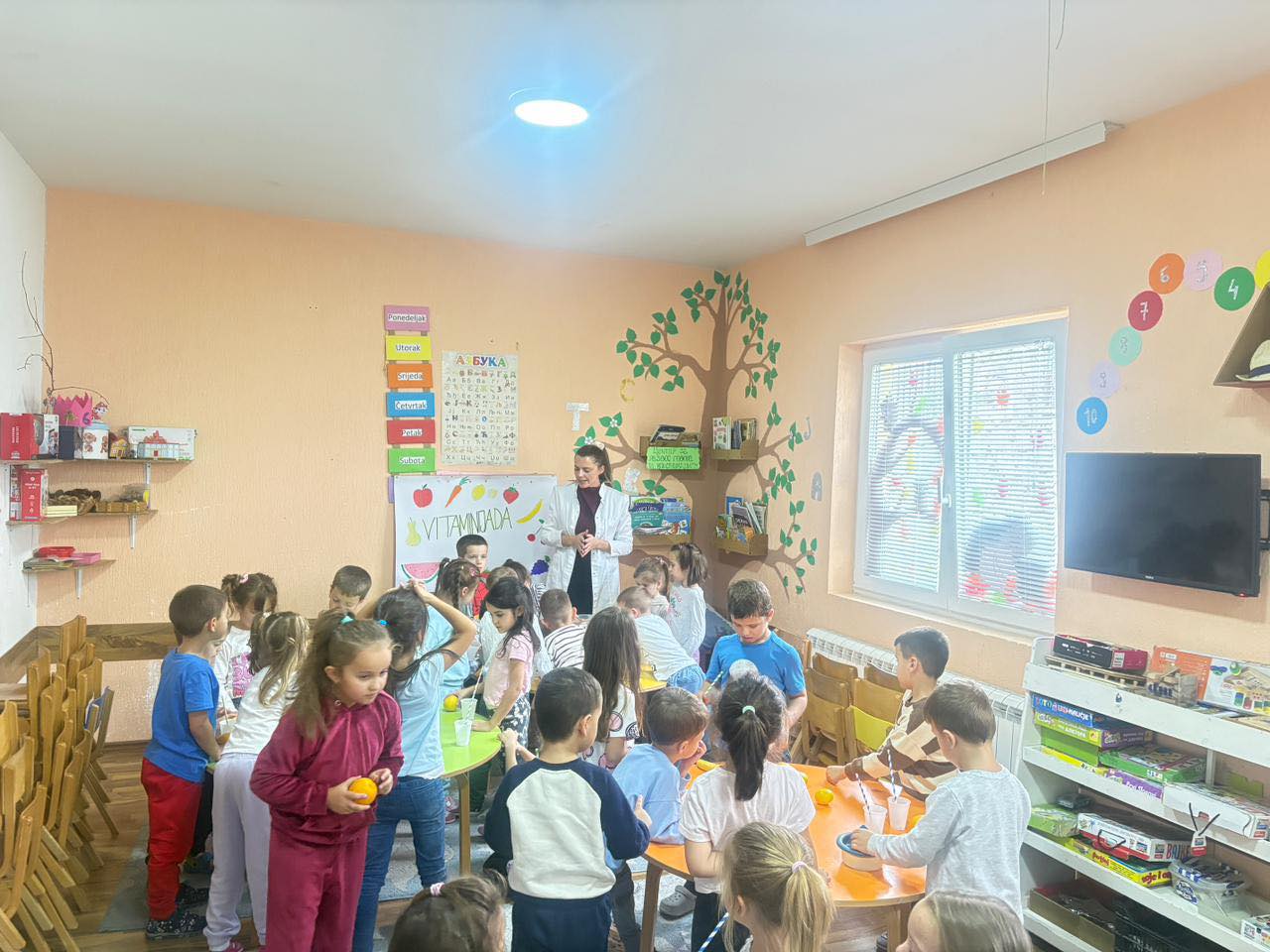 Kroz zanimljive aktivnosti i degustaciju svježih namirnica, predškolci su otkrivali koje vitamine kriju omiljene voćke i zašto je važno svakog dana jesti raznovrsno i zdravo.
