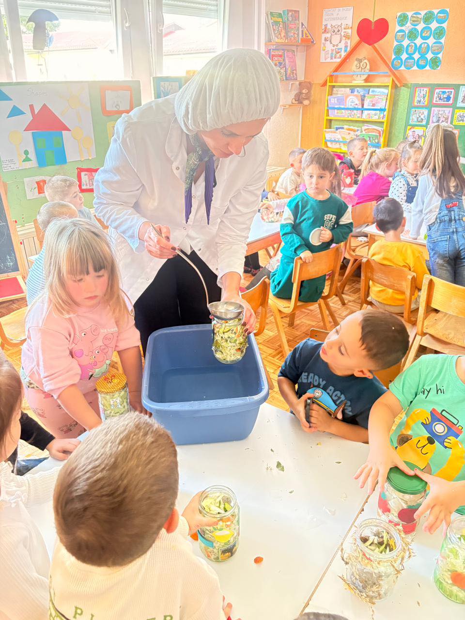 Djeca su imala priliku da peru, sjeckaju i pakuju povrće u teglice, što ih je posebno obradovalo.